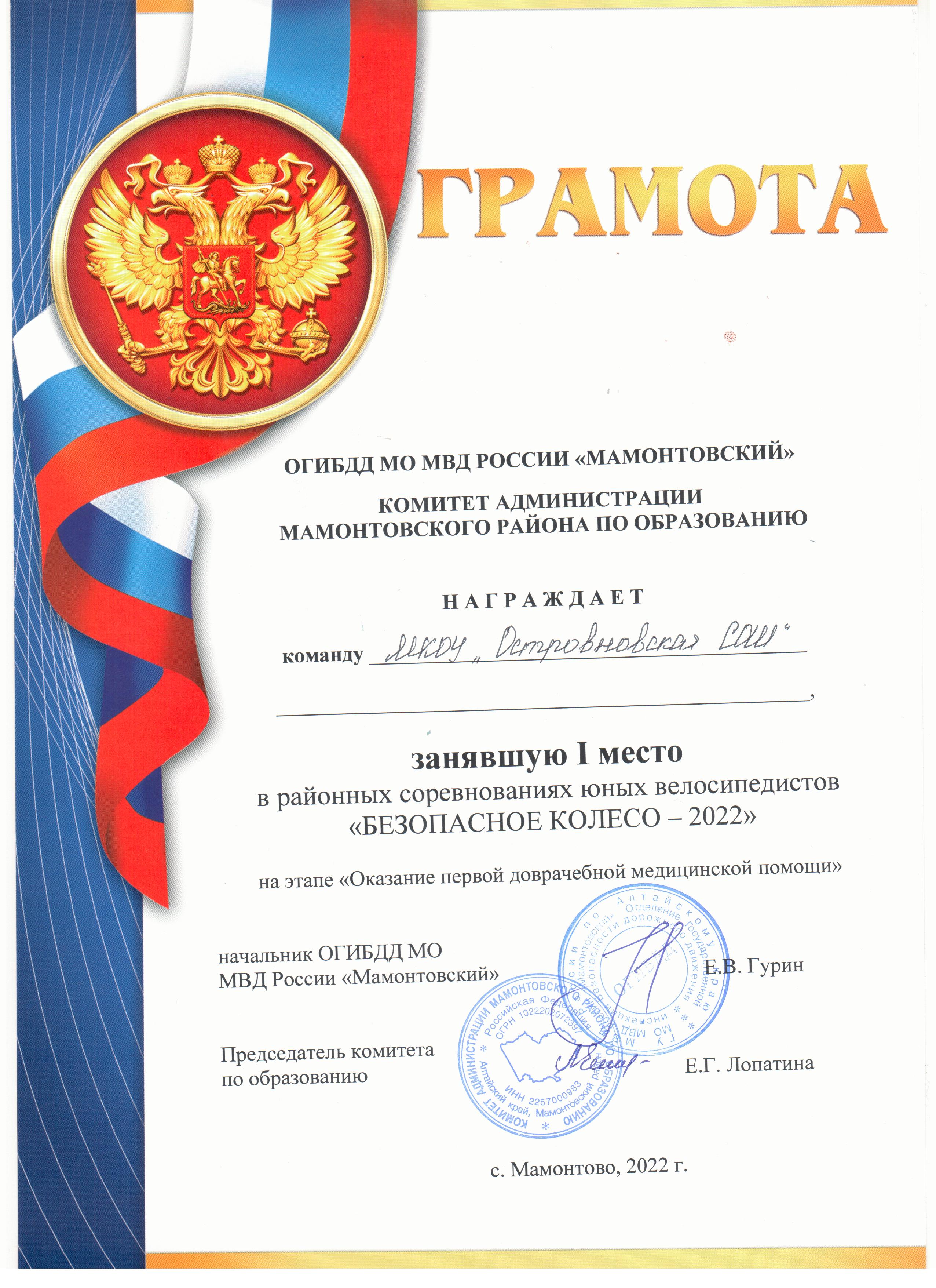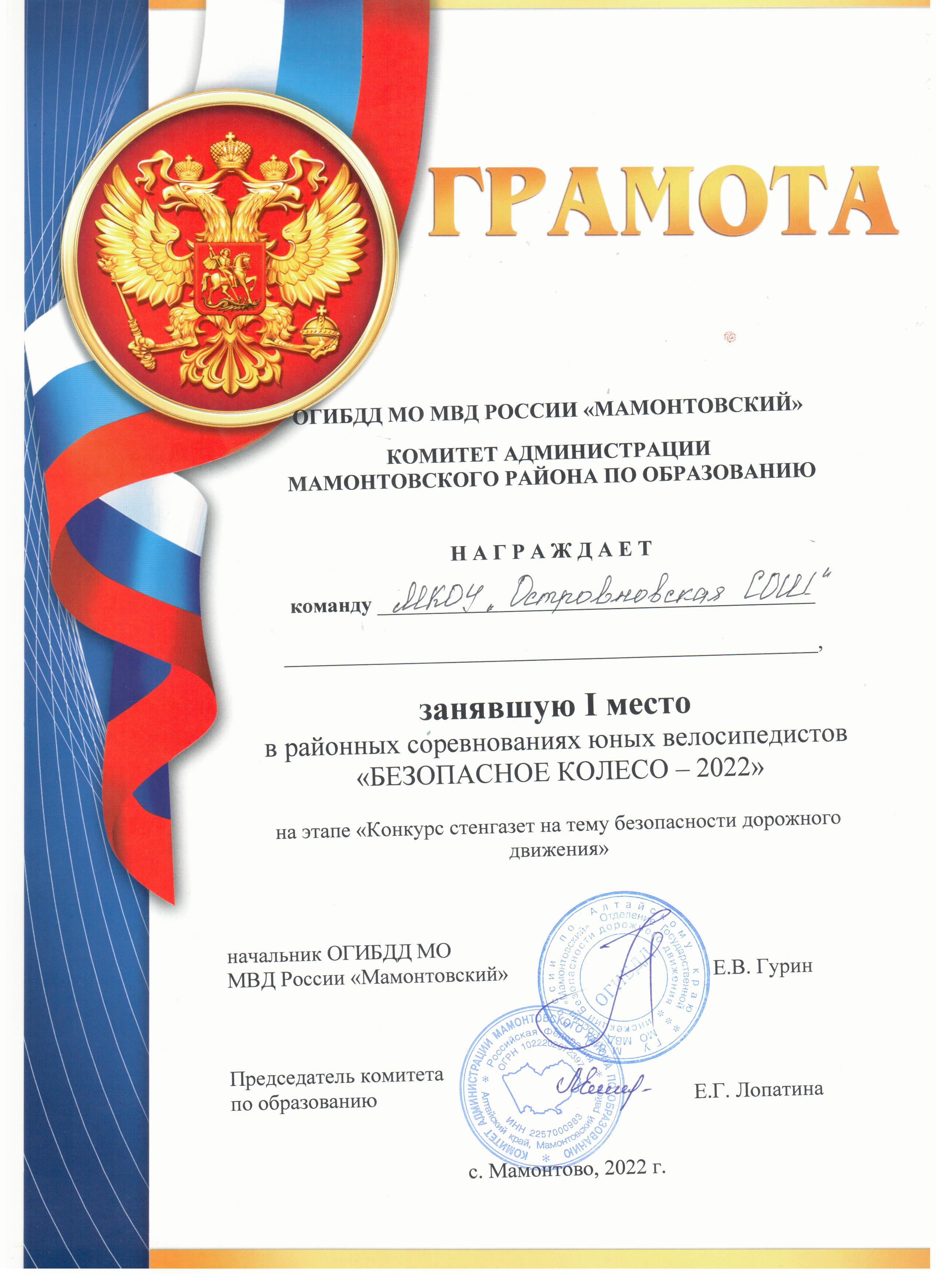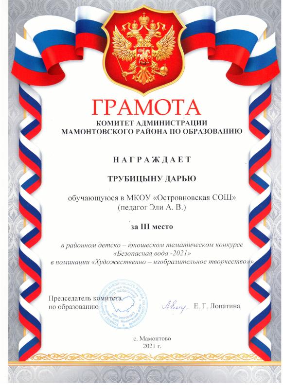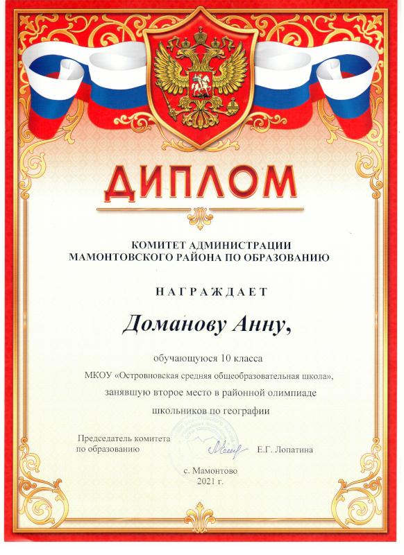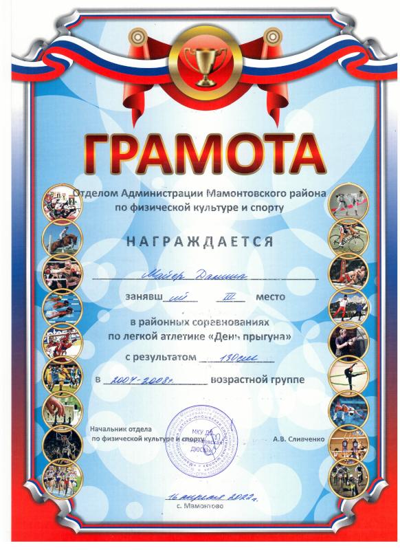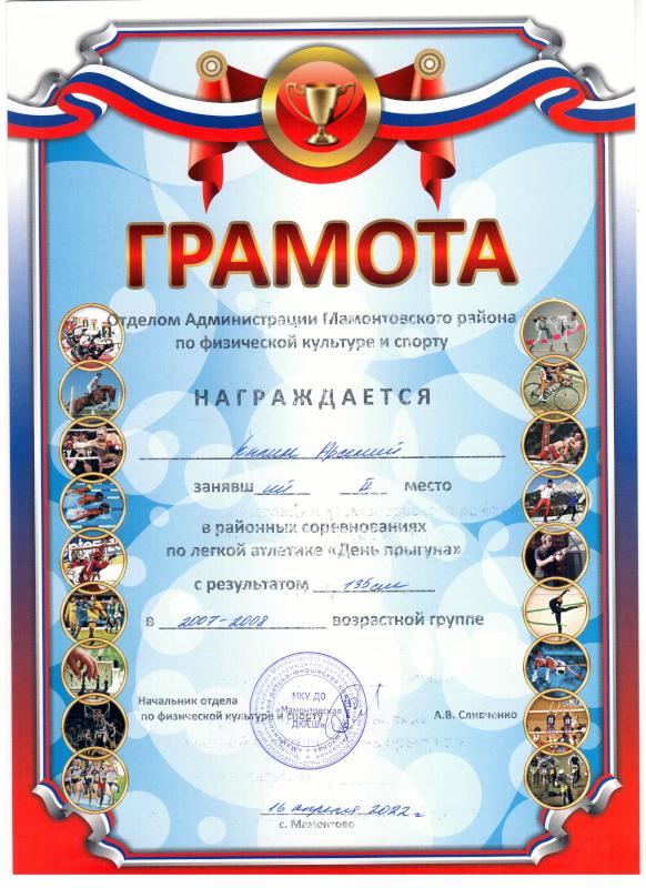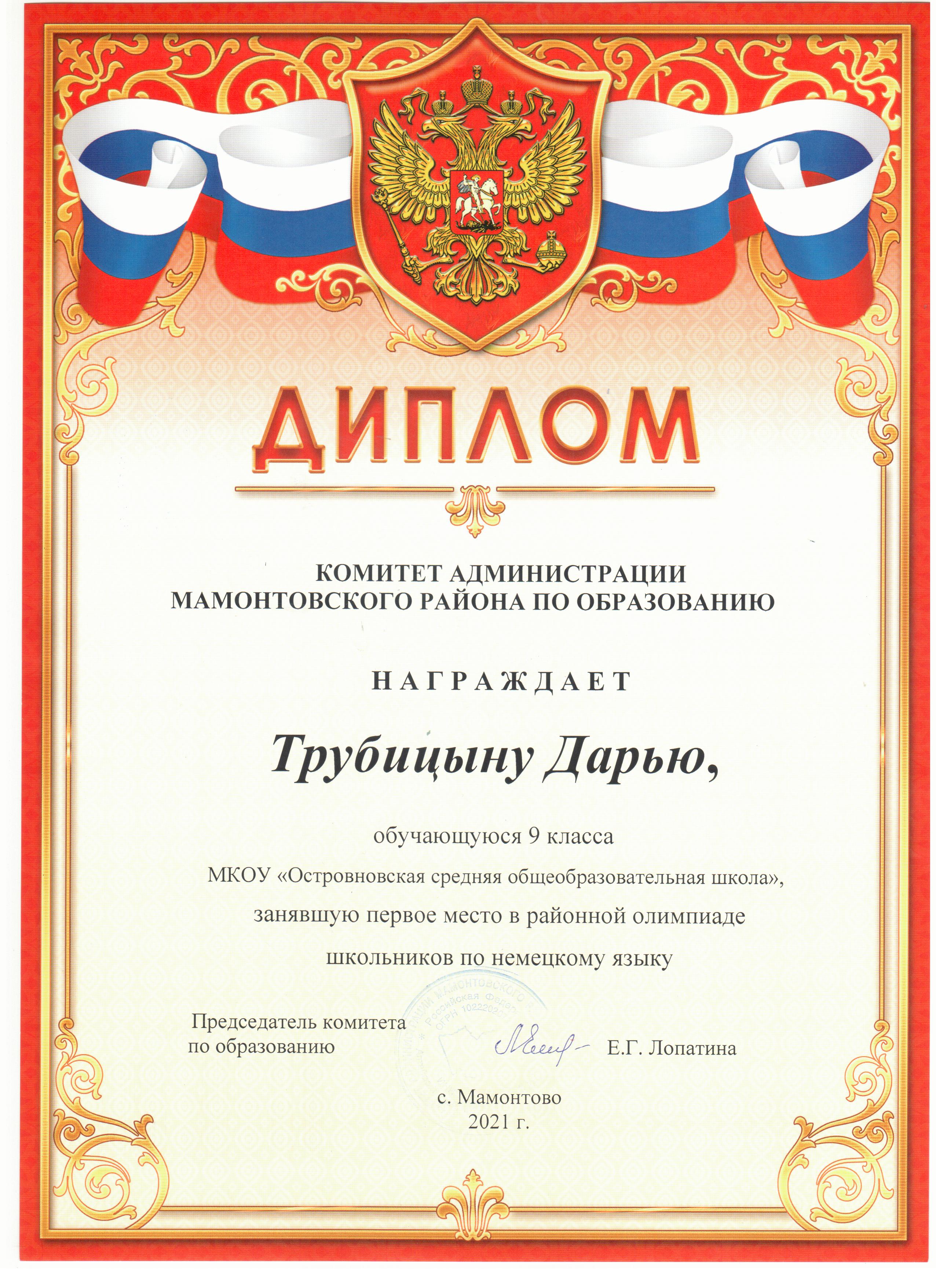 За 1 место в районной предметной олимпиаде по немецкому языку