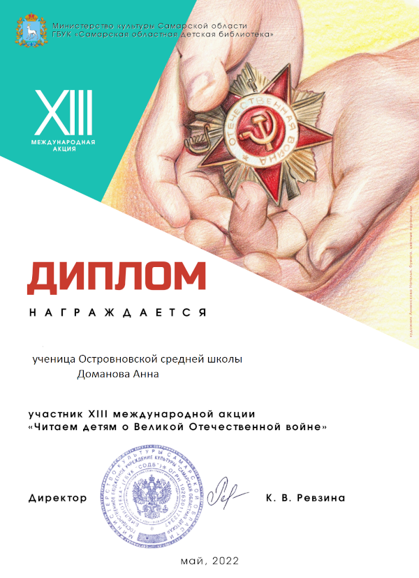 Диплом участника XIII международной акции "Читаем детям о войне"